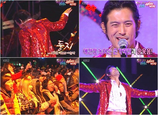 KBS관현악단의 반주와 코러스를 배경으로 태연히 노래를 시작한 오지호는 중간 중간 다리를 떨고 허리를 돌리는 등 과감한 무대매너까지 소화해 좌중의 갈채를 자아냈다. 특히나 여성 팬들은 한없이 망가진 오지호의 파격적인 무대에 광분했다.