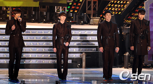 그룹 2AM이 14일 오후 서울 올림픽공원 체조경기장에서 열린 '2010 사랑나눔콘서트'에 참석해 열창하고 있다.