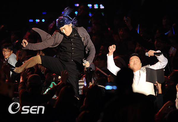 이날 공연에서 김장훈은 싸이와 함께 객석에 ‘난입’, 발차기 퍼포먼스를 선보여 뜨거운 반응을 얻었다.