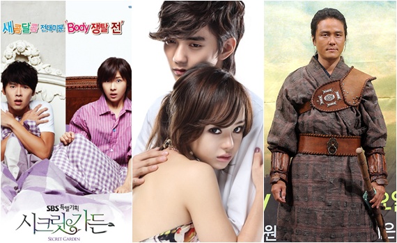 15일 시청률조사회사 AGB닐슨미디어리서치에 따르면 14일 방송된 SBS '시크릿가든'은 전국기준 14.8%의 시청률을 기록하며 동시간대 1위를 차지했다. 이어 MBC '욕망의 불꽃'이 13.5%를 기록, 뒤를 바싹 쫒고 있고 KBS 1TV 대하드라마 '근초고왕'(10.1%) 역시 만만치 않은 기세다.