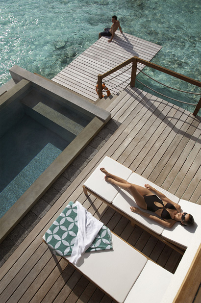 바다 위에 둥지를 튼 워터빌라에서는 오색찬란한 물고기떼와 산호 군락이 기쁨조 역할을 톡톡히 한다. 포시즌스 란다기라바루는 친환경 6성급 리조트로서 산호를 연구·보존하고 있는 만큼 수중환경이 유독 아름답다. 스노클링, 다이빙, 카타마란, 카약, 윈드서핑, 수상스키 등 리조트가 지원하는 각종 방법을 동원해 성에 차도록 바다를 누리자. 바다 곁에서 그의 잔잔한 숨소리를 들으며 배우는 요가 강습도 경험해볼만 하다.
