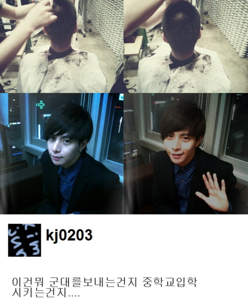 김준은 15일 자신의 트위터를 통해 이날 현역 입대하는 박윤화의 삭발당시 사진을 공개하며 “이건 뭐 군대를 보내는 건지... 중학교 입학시키는 건지...”라는 짤막한 글로 착잡한 심경을 전했다.