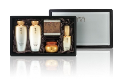 설화수의 대표 제품인 자음수, 자음유액, 윤조에센스, 자음생크림, 궁중비누 5개 제품과 브랜드 철학과 제품소개를 담은 영문 브로셔로 구성됐다.