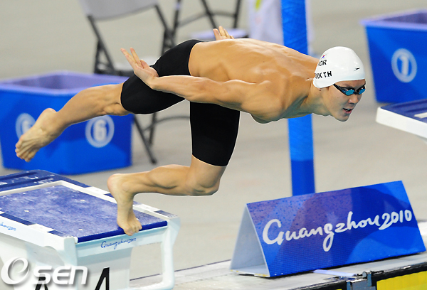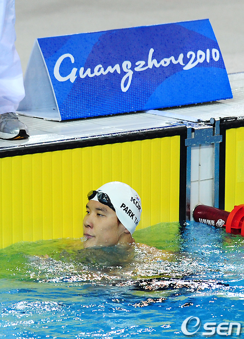박태환은 16일 오전 중국 광저우 아오키 아쿠아틱센테에서 열린 광저우 아시안게임 남자 자유형 400m 예선 4조서 3분55초80으로 전체 5위를 마크, 결승서 2레인에 포진해 경쟁자들을 자신의 오른쪽에 몰아놓고 레이스를 펼치게 됐다.