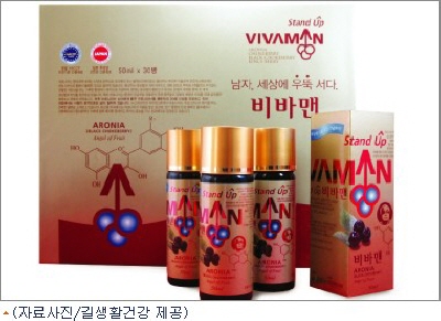 ㈜대산의 천연물신약개발연구소측은 “지난 4년간의 연구개발의 성과로 출시된 비바맨은 아로니아 추출물, 홍삼 추출물, 마카 추출물, 산수유 추출물, 은행잎 추출물 등 주원료인 아로니아 추출물을 비롯한 혈류개선 및 세포노화방지 효과가 탁월한 약 100여가지의 식물성 물질로 되어 있다”고 전했다.