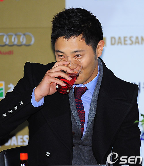 무대 위에서 진구가 무대 위에서 노래를 부른 후 음료를 마시고 있다./rumi@osen.co.kr
