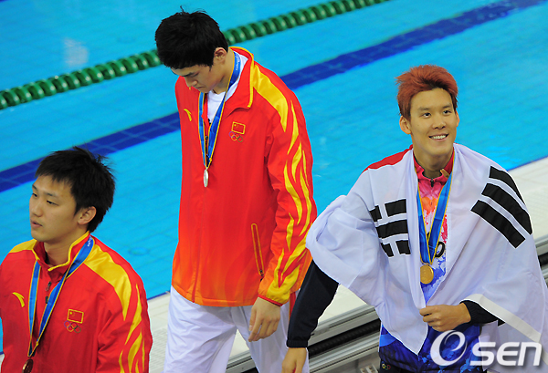 하지만 첨단 수영복이 금지된 올해부터는 완전히 달라졌다. 아시안게임 이전 올 시즌 최고 기록이 박태환의 기록인 3분44초73. 오히려 완전히 달라졌다. 장린은 3분44초91, 쑨양은 3분45초22가 시즌 최고 기록이었다.