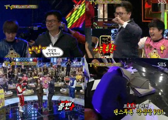 이런 나 PD의 예능감에 뒤지지 않는, 예능감으로 똘똘 뭉친 PD가 있었으니 그는 바로 SBS 간판예능프로 '강심장'의 박상혁 PD다. '강심장'을 인기 예능 프로그램 만들어온 박 PD는 16일 방송된 '강심장'에서 출연자들의 자연스러운 프로그램 참여를 유도하기 위해 살신성인의 정신으로 무대에 올라 정체 불명의 '골반 막춤'을 선보이는 댄스 투혼을 발휘해 웃음 폭탄을 안겼다. 이 뿐만 아니라 박 PD는 출연자들 섭외를 위해 화환도 보내는 등 적극적인 모습을 보여주는 열정적인 PD다.