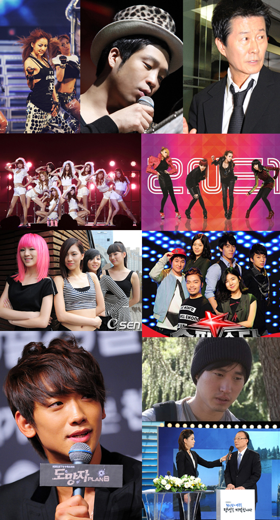 10대부터 중년까지 열광하는 걸그룹의 돌풍으로 가요계가 연예계 거의 모든 이슈를 독점하다시피 했고, 해외로 뻗어나간 가수들은 갓 데뷔한 신인부터 20년차 중견까지 모두가 성공적인 성적표를 받아들었다. 사건, 사고, 논란도 잇따라 터져, 승승장구하던 톱가수들이 일생일대의 위기를 맞기도 했다. 지난 한해 동안 가요계를 뒤흔들었던 사건 10가지를 꼽았다.