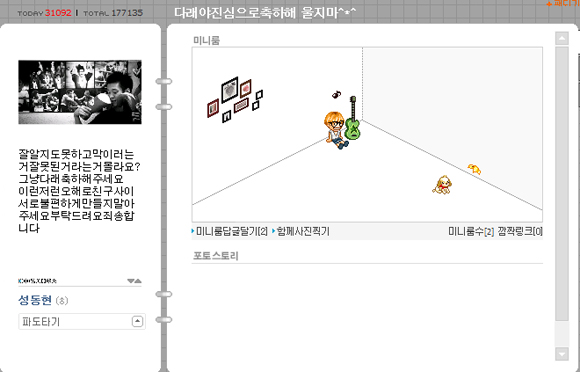 <사진> 성동현 미니홈피 캡처.