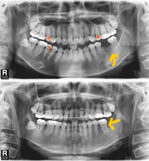 세 번째로는 자가치아이식 치료법이다. 자가치아이식이란 구강 내 사랑니 같은 불필요한 치아가 있다면 그 치아를 어금니가 빠진 자리에 이식하는 방법이다. 굳이 임플란트와 같은 인공치근 없이 자기 치아를 그대로 이식할 수 있다는 장점이 있지만, 이식할 치아와 이식부위가 유사해야 하고, 성공확률이 임플란트보다는 낮다는 단점이 있다. 그럼에도 불구하고 만약 자가치아이식이 실패하더라도 그 자리에 임플란트 시술도 가능하기 때문에 최근에 자가치아이식 치료를 받는 환자들이 늘어나는 추세이다.