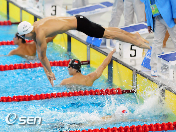 박태환(단국대)-정두희(서울시청)-박선관-최규웅(이상 한국체대)으로 이뤄진 광저우 아시안게임 남자 혼계영 400m 단체조가 은메달을 수확했다. 1위로 골인한 중국은 2번 영자의 부정 출발로 실격됐다.