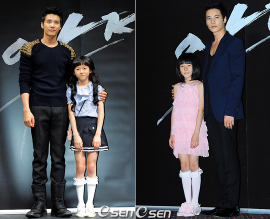검정 재킷 속에 블루셔츠와 보타이를 매치한 원빈은 영화 속 강인한 모습에 부드러운 미소까지 더해 팬들을 환호케 했고, 김새론은 원빈과 커플 느낌을 자아내는 더블코트를 입어 깜찍함을 더했다.