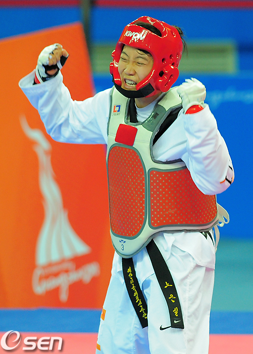 노은실(21, 경희대)이 19일 오후 중국 광저우 광둥체육관에서 열린 2010 광저우 아시안게임 태권도 여자 62kg급 결승전에서 이란의 아세마니 라흐엘레에 14-2 완승을 거뒀다.