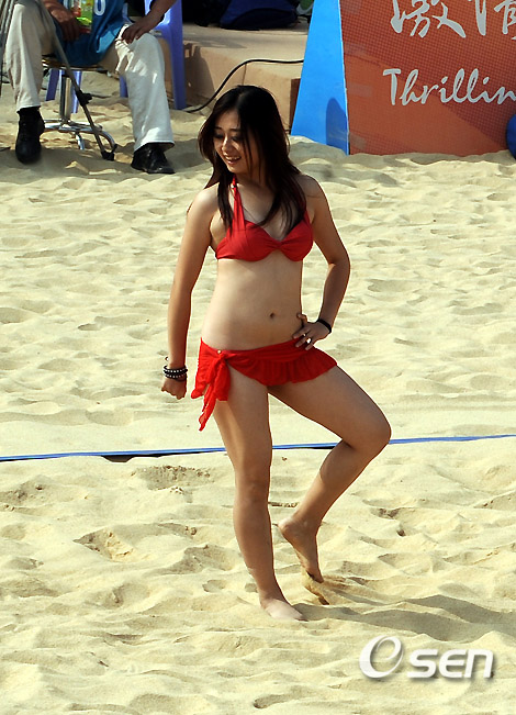19일 한국의 이선화 곽미정 조가 스리랑카와 D조 조별리그 마지막 경기를 펼친 광저우 아시안게임 비치발리볼 경기장은 치어리더 공연으로도 유명하다. 매 경기가 끝나고 펼치지는 치어리더 공연은 경기장을 찾은 관객들의 흥을 돋우기 위한 서비스로 인기를 얻고 있으나 선수들의 경기력에 지장을 준다는 지적도 받고 있다. 치어리더들이 신나는 율동을 펼치고 있다.