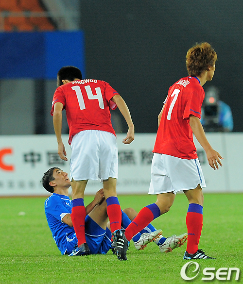 홍명보 감독이 이끄는 2010 광저우 아시안게임 축구대표팀이 19일 중국 광저우 톈허 스타디움서 우즈베키스탄을 상대로 4강진출을 위한 일전을 펼쳤다.