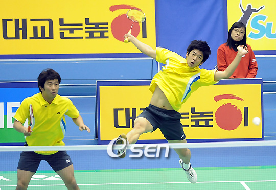 2010광저우아시안게임서 금메달을 노렸던 이용대(22, 삼성전기)-정재성(28, 국군체육부대)조의 결승진출이 좌절됐다.