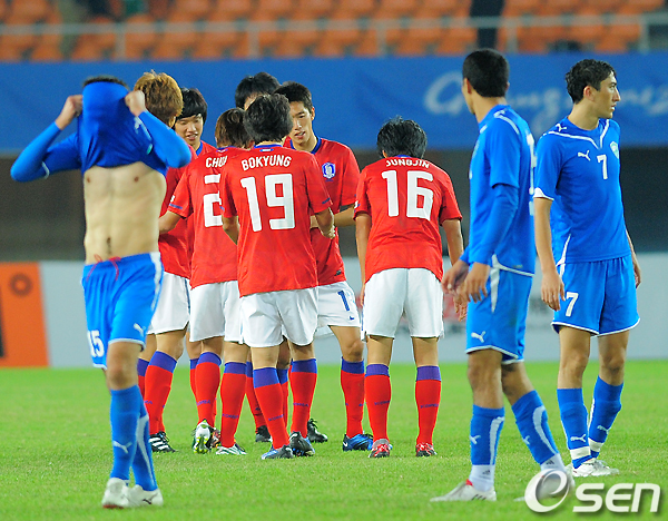 한국은 19일 광저우 텐허 스타디움서 벌어진 8강 경기서 1994년 히로시마 아시안게임 준결승서 패한 우즈베키스탄과 연장 승부끝에 박주영 김보경의 연속골로 3-1로승리 하며 17년만에 패배를 설욕했다.