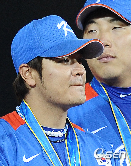금메달을 목에 건 추신수가 눈물을 글썽이고 있다. /ajyoung@osen.co.kr
