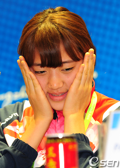 박태환과 정다래가 20일 오전 중국 광저우 미디어 프레스센터 내 컨퍼런스룸에서 기자회견을 가졌다.