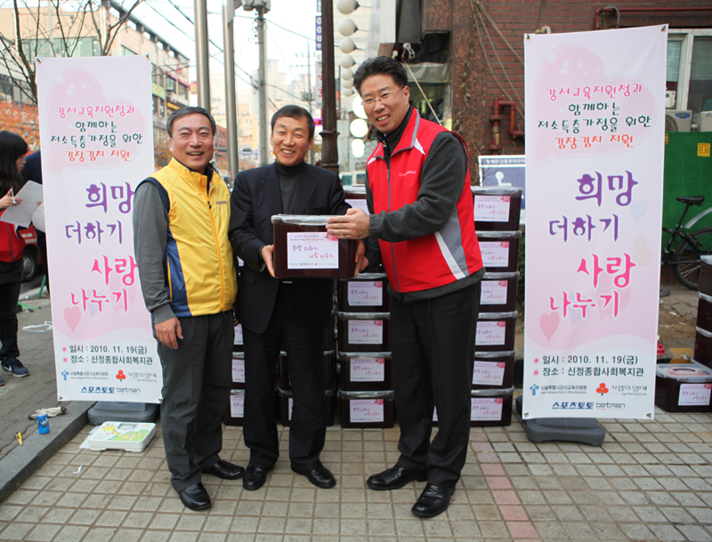 체육진흥투표권 수탁사업자인 오리온그룹 계열의 스포츠토토와 온라인 공식발매사이트인 베트맨 임직원들로 구성된 사회봉사단 18명과 스포츠토토 판매점주 2명 등 총 20명은 지난 19일에 서울 양천구 신정동에 위치한 신정종합사회복지관을 방문해 저소득 가정을 위한 김장 봉사활동을 펼쳤다.