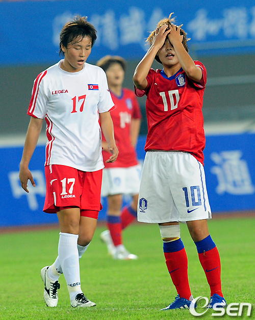 결국 한국은 역대 전적 1승 1무 8패의 열세를 이겨내지 못하고 또다시 북한에 패배, 결승전을 눈 앞에 두고 아쉬움의 눈물을 흘려야 했다. 북한에 패배한 한국은 22일 오후 4시 반 중국 톈혀 스타디움서 예선전에서 상대했던 중국과 사상 첫 메달을 놓고 대결한다.