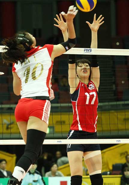 1세트서 한국은 김연경(21. JT 마블러스)-황연주(24. 현대건설)의 공격력과 센터 정대영(29. GS 칼텍스)의 높이를 앞세워 접전 끝에 25-23 승리를 거뒀다. 2세트에서도 한국은 중국보다 상대적으로 앞선 경기력을 보이며 두 세트를 연달아 따냈다.