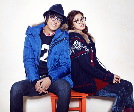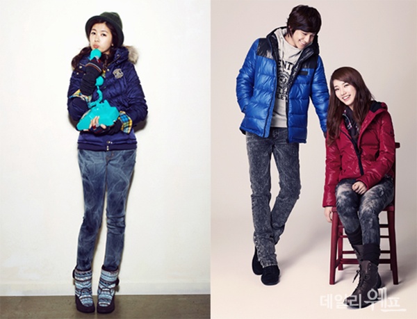 원색 컬러 패딩아우터 + 데님 팬츠 매치는 발랄한 캐주얼 룩을 완성해준다. KBS '장난스런 키스' 에서 귀여운 철부지 짝사랑녀의 캐릭터로 큰 사랑받은 정소민은 비비드한 퍼플 컬러의 퀼팅된 패딩점퍼+ 스노우 워싱 데님 팬츠 + 니트 부츠로 매력적인 스타일링을 하였다.