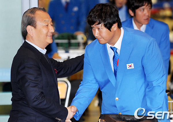 이날 공항에는 유영구 한국야구위원회(KB0) 총재와 이상일 KBO 사무총장, 대한야구협회 직원들이 마중을 나왔고 유영구 총재가 조범현 감독에게 꽃다발을 전달했다.