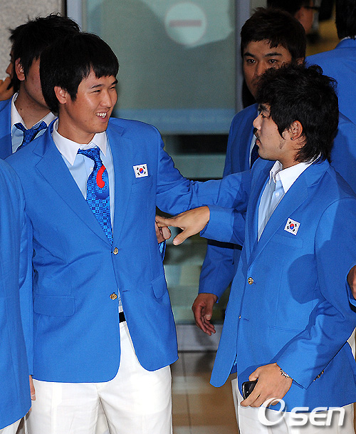 이날 공항에는 유영구 한국야구위원회(KB0) 총재와 이상일 KBO 사무총장, 대한야구협회 직원들이 마중을 나왔고 유영구 총재가 조범현 감독에게 꽃다발을 전달했다.