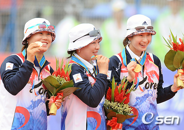 한국은 지난 21일 광저우 아오티 양궁장에서 열린 열린 중국과 결승전서 4엔드 총합 220-220으로 동점을 이룬 뒤 2차 연장까지 가는 고전 끝에 2차 연장에서 세 명이 모두 10점을 기록하는 뒷심을 발휘하며 금메달을 획득했다. 이 금메달로 한국은 1998년 방콕 아시안게임 이후 4회 연속 여자 단체 우승 위업을 달성했다.