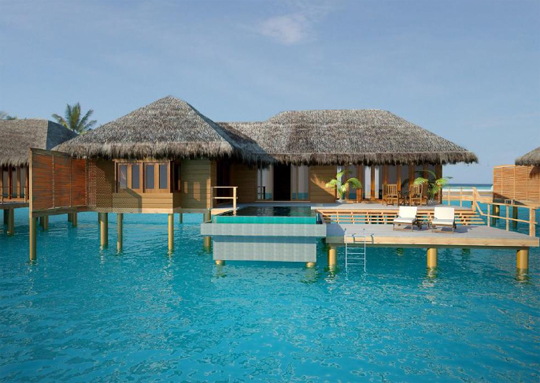 섬 북동쪽 라군 위에 지어진 40채의 워터빌라는 우아하면서 고급스러운 인테리어가 돋보인다. 객실 바닥 일부분이 유리로 설계돼 있어 푸른 바닷속을 유영하는 물고기의 자유로운 몸짓을 감상할 수 있다.