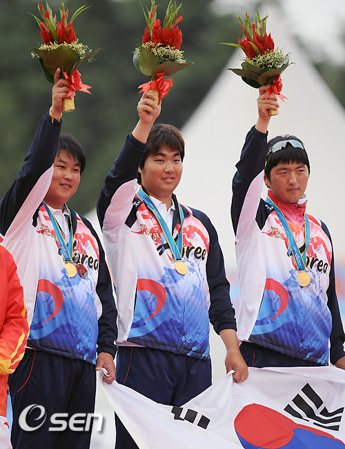 한국은 22일 광저우 아오티 양궁장에서 열린 광저우 아시안게임 남자 양궁 단체전 결승 중국과의 경기에서 금메달을 거머쥐었다. 이 금메달로 한국은 1982년 뉴델리 대회 이후 8연패를 위업을 달성했다.