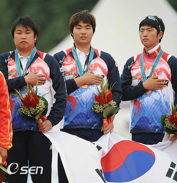 한국은 22일 광저우 아오티 양궁장에서 열린 광저우 아시안게임 남자 양궁 단체전 결승 중국과의 경기에서 금메달을 거머쥐었다. 이 금메달로 한국은 1982년 뉴델리 대회 이후 8연패를 위업을 달성했다.
