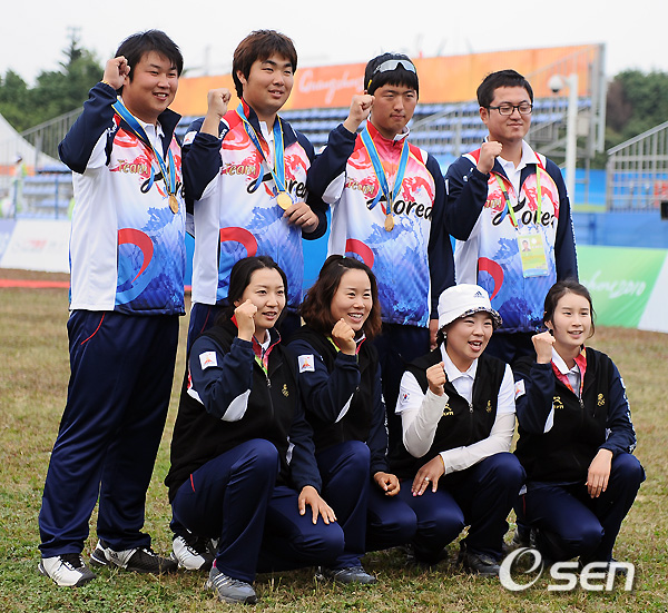 한국은 22일 광저우 아오티 양궁장에서 열린 광저우 아시안게임 남자 양궁 단체전 결승 중국과의 경기에서 금메달을 거머쥐었다. 이 금메달로 한국은 1982년 뉴델리 대회 이후 8연패를 위업을 달성했다.