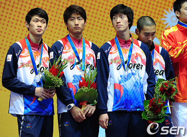 오은석(27, 국민체육진흥공단) 김정환(27, 국군체육부대) 구본길(21, 동의대) 원우영(28, 서울메트로)으로 이루어진 한국은 22일 광저우 광다 실내체육관에서 벌어진 중국과의 광저우 아시안게임 남자 펜싱 사브르 단체 결승전서 홈 텃세 속 분전했으나 44-45로 아깝게 패하고 말았다.