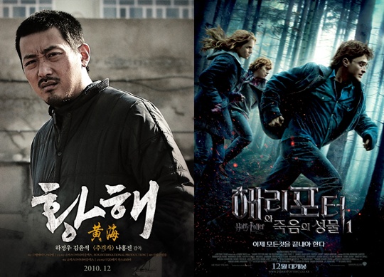 12월 중순 한국과 할리우드를 대표하는 두 편의 영화가 각각 개봉해 치열한 접전을 펼친다. 나홍진 감독, 하정우, 김윤석이 뭉친 영화 ‘황해’와 시리즈물 최고의 아성을 이어가고 있는 ‘해리포터와 죽음의 성물1’이 정면 대결한다.