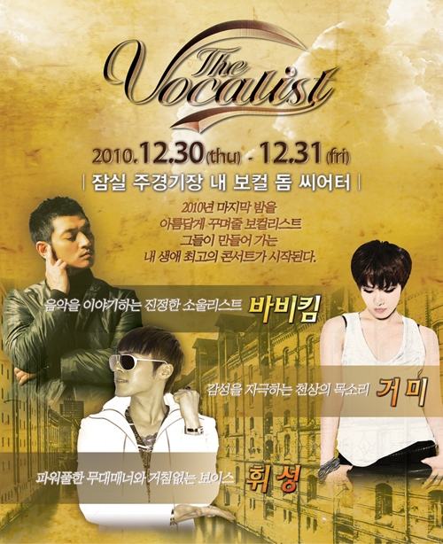 세 사람은 오는 12월 30~31일 양일간 잠실 주경기장 내 보컬돔씨어터에서 열리는 '더보컬리스트'의 주인공으로 나선다.