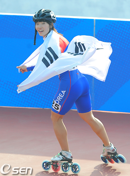 '무서운 신예' 안이슬(18. 청주여상)이 뛰어난 기록을 선보이며 첫 정식종목으로 채택된 여자 인라인롤러 300m 타임 트라이얼에서 금메달을 거머쥐는 기염을 토했다.