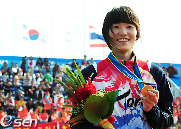 '무서운 신예' 안이슬(18. 청주여상)이 뛰어난 기록을 선보이며 첫 정식종목으로 채택된 여자 인라인롤러 300m 타임 트라이얼에서 금메달을 거머쥐는 기염을 토했다.