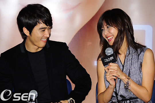송승헌과 마츠시마 나나코가 기자회견중 다정하게 얘기를 나누고 있다./rumi@osen.co.kr