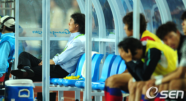 경기후 홍명보 감독이 허탈한 표정으로 그라운드를 바라보고 있다. /jpnews@osen.co.kr