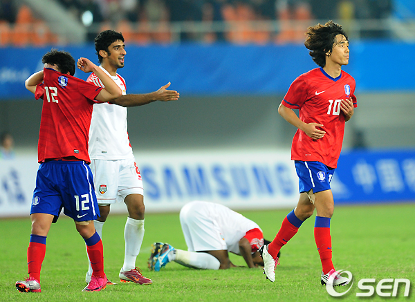 홍명보 감독이 이끄는 광저우 아시안게임 축구대표팀은 23일 중국 광저우 톈허 스타디움서 열린 UAE와 남자 축구 준결승전에서 연장전까지 가는 접전 끝에 연장 후반 추가 시간에 알라브리에 골을 허용하며 0-1로 패했다.