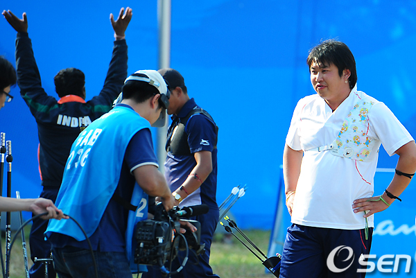 오진혁은 24일 광저우 아오티 양궁장에서 열린 광저우 아시안게임 남자 양궁 개인전 8강서 인도의 타룬디프 라이와 겨뤘으나 세트 승점 4-6(27-26 26-30 28-28 27-29 28-28)으로 패하고 말았다.