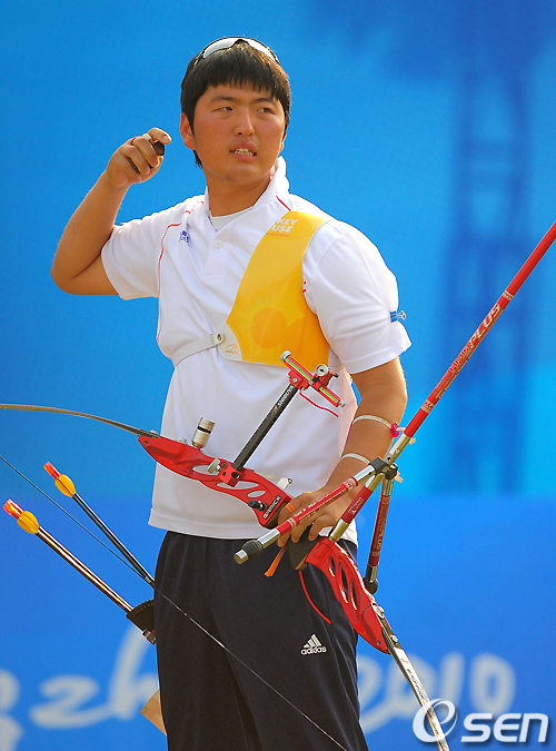 역사를 새로 쓴 소년은 무덤덤한 웃음으로 기쁨을 표현했다. 아시안게임 남자 양궁서 16년 만에 고교생 2관왕이 된 김우진(18. 충북체고)이 2012 런던 올림픽에서 활약을 예고했다.