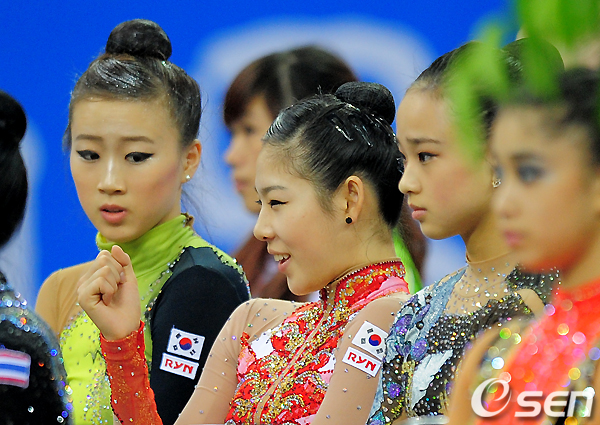 25일 오전 중국 광저우 아시안게임 타운 체육관에서 열린 리듬체조 개인종합과 팀 경기에서 신수지가 파이팅을 외치고 있다. /jpnews@osen.co.kr