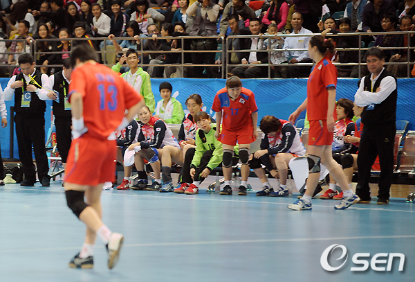 25일 오후 중국 광저우 광공 경기장에서 열린 제16회 광저우 아시아경기 여자핸드볼 준결승 한국-일본 경기 4강전서 28-29 (11-14 17-15)로 패하고 말았다. 1990년 베이징 아시안게임 이후 6회 연속 제패를 노리던 한국의 꿈은 일본의 역습으로 인해 수포로 돌아갔다.