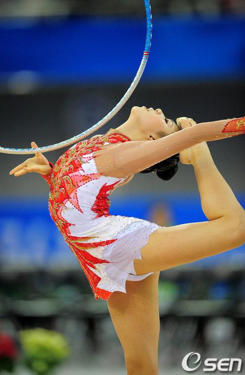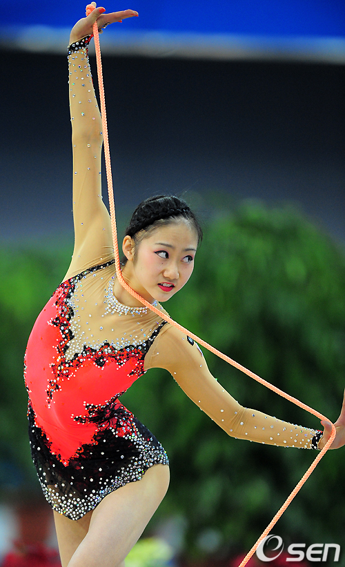 사상 최초로 단체전 메달을 노리는 한국 리듬체조 대표팀은 개인종합 예선을 겸한 팀 예선 로테이션1에서 카자흐스탄, 우즈베키스탄, 일본에 이어 4위를 기록중이다. 팀 결승은 오후 4시 재개된다. /jpnews@osen.co.kr