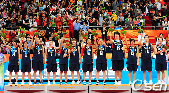 16년만에 금메달을 노리던 한국 여자 농구가 중국의 만리장성에 막히며 은메달에 그쳤다.