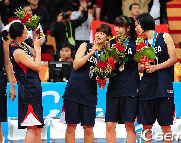 16년만에 금메달을 노리던 한국 여자 농구가 중국의 만리장성에 막히며 은메달에 그쳤다.